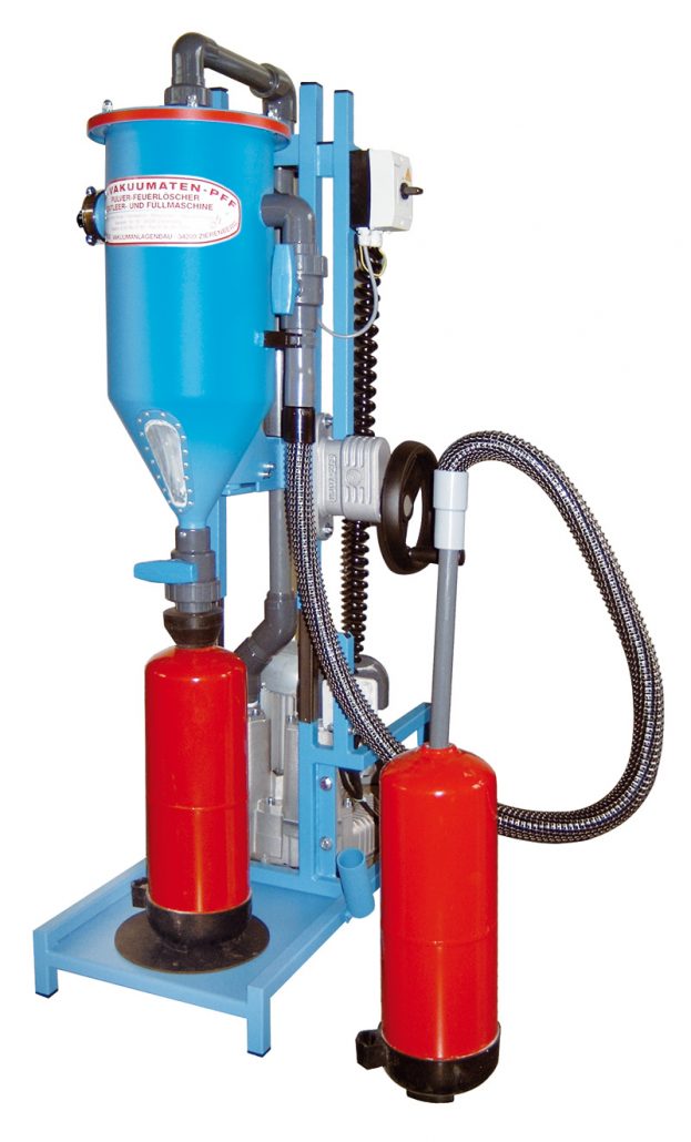 - La máquina para la recarga de extintores de polvo, modelo PFF-FLIPP-EKW permite un almacenamiento intermedio de hasta 25 kg de polvo en la tolva